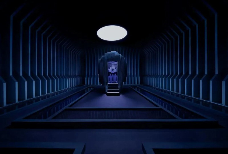 玻璃制成的裝置的地板、墻壁和天花板有機(jī)浮雕和散布著的骨頭似的圖案對稱性和和諧性在這里完美呈現(xiàn)并反映著圣所的圣潔