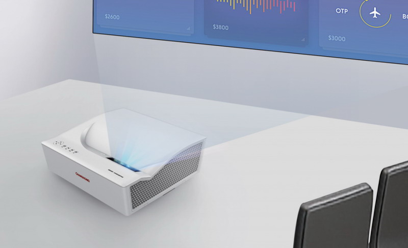 長虹激光電視商教系列為超短焦激光電視,離墻50厘米就能投射100吋畫面,更省空間,也不會因為長焦投影而照射老師或會議演講者的眼睛。