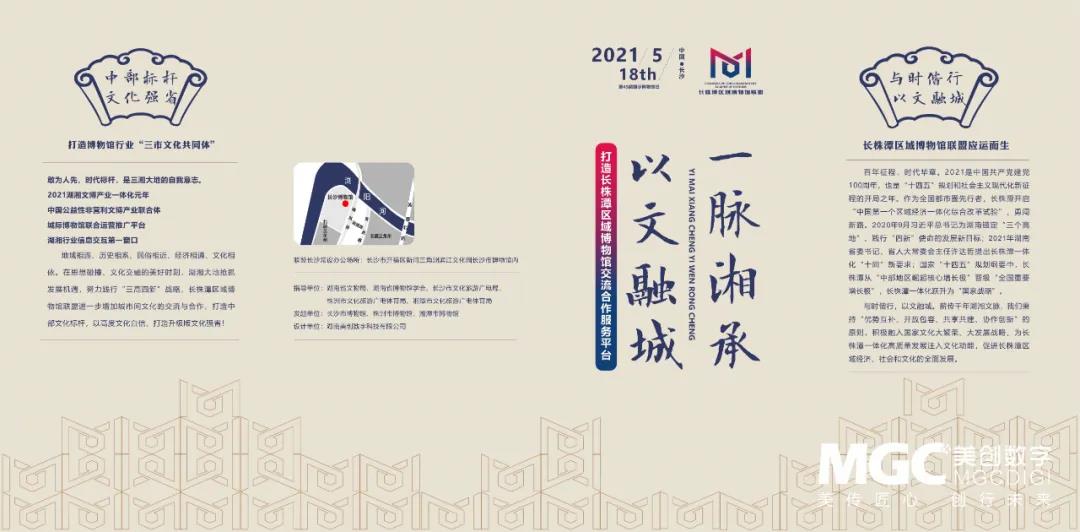 百年征程,時代華章。博物館作為社會精神文明和公共服務的“文化中樞”,直接影響和決定著一個城市的胸襟與發(fā)展的后勁。值此第45個國際博物館日到來之際,由長株潭三市博物館等聯(lián)合發(fā)起,40家機構(gòu)自愿加入成立的公益性非營利聯(lián)合體運勢而生。MGC美創(chuàng)團隊,作為此次活動的承辦單位助力長株潭區(qū)域博物館聯(lián)盟成立大會在長沙博物館順利舉辦。