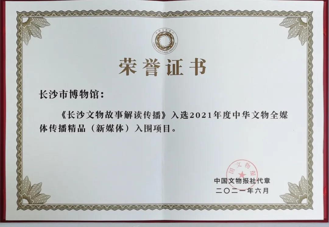 6月12號(hào),國(guó)家文物局在重慶舉行“2021年度中華文物全媒體傳播精品(新媒體)推介工作”的頒獎(jiǎng)儀式,長(zhǎng)沙博物館“長(zhǎng)沙文物歷史故事解讀傳播”項(xiàng)目成功入圍獲獎(jiǎng)。