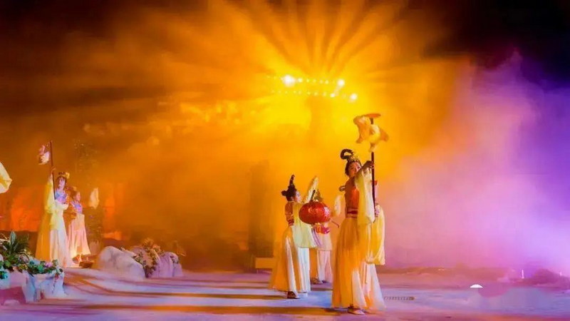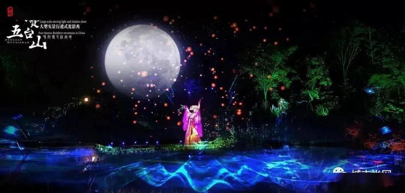 《燈贊五臺山》實景光影秀將五臺山傳世名篇以3Dmapping投影秀、燈光秀、多媒體動畫等先進的光影技術與舞蹈劇目、戲曲演藝結合。運用極致的視覺表達、高標準的美學追求打造全方位4D沉浸行進觀演實景空間,讓塵封千年的五臺山故事于舞臺之上破維重現!