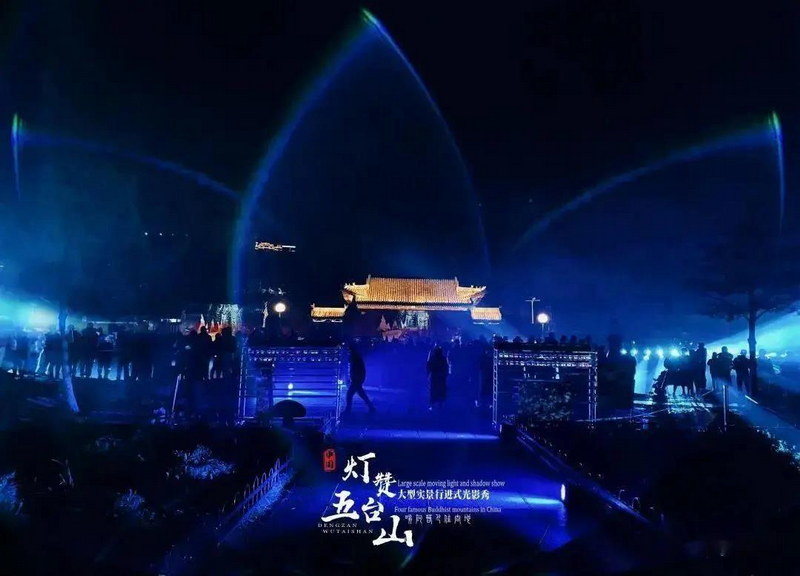 五臺山“空間光影秀”旖旎炫彩的燈光點亮了五臺山景區中心的夜空輪廓線,彌補了五臺山沒有大型空間實景光影秀的空白,同時讓世界上唯一一座世界文化遺產佛教圣山五臺山成為了中國佛教實景文化藝術光影演出新地標。