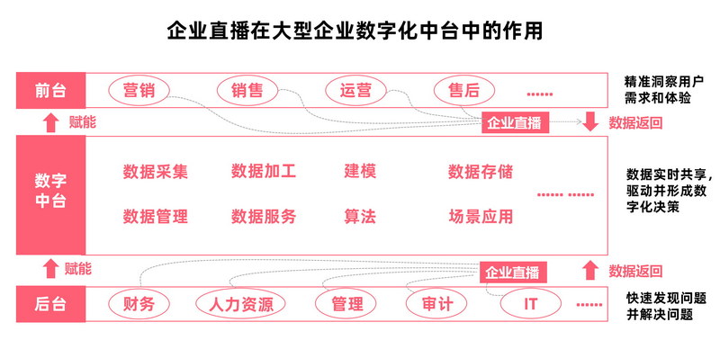 對于組織架構龐大、員工數量多的大型企業,企業更青睞搭建品牌自有直播平臺,因此較靈活,可按需開發功能(支持與企業數據中臺或業務系統打通)的PaaS服務更符合企業數字化戰略需求。