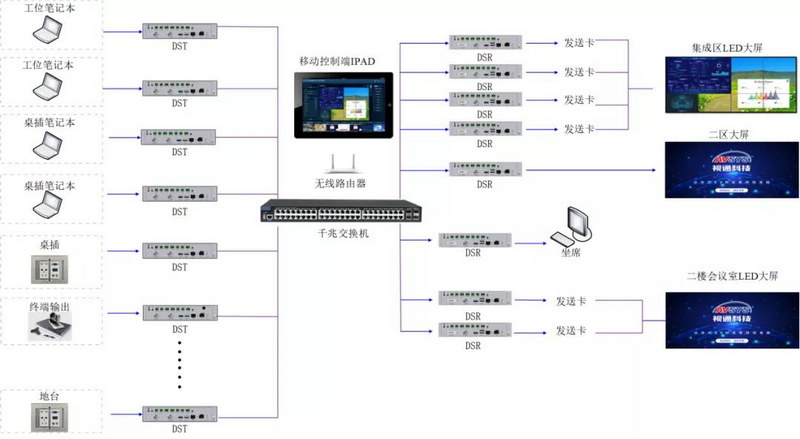 01 4K高清分布式LED拼接,切換、開(kāi)窗、跨屏漫游、輪巡、輪切。