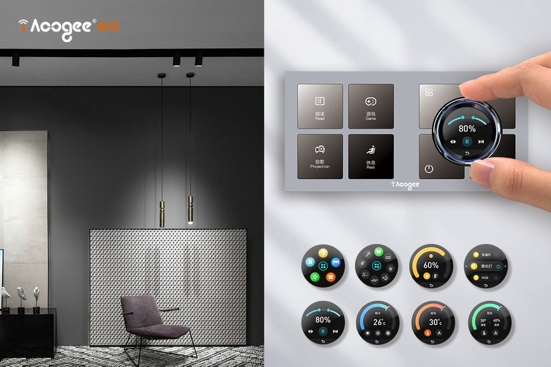 AooGee奧格璽印國風X系列色系選用當下裝飾流行百搭色-星空灰,連框設計滿足不同空間“1+2+3”組合式搭配,方程式連體無縫拼接;墻上的方圓之道,將文化智慧糅合機械美學,是一個蘊含東方人處世哲學的智能面板,在舉手投足間便展示出了富有修養的獨特氣質。