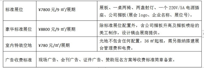 參展收費標準