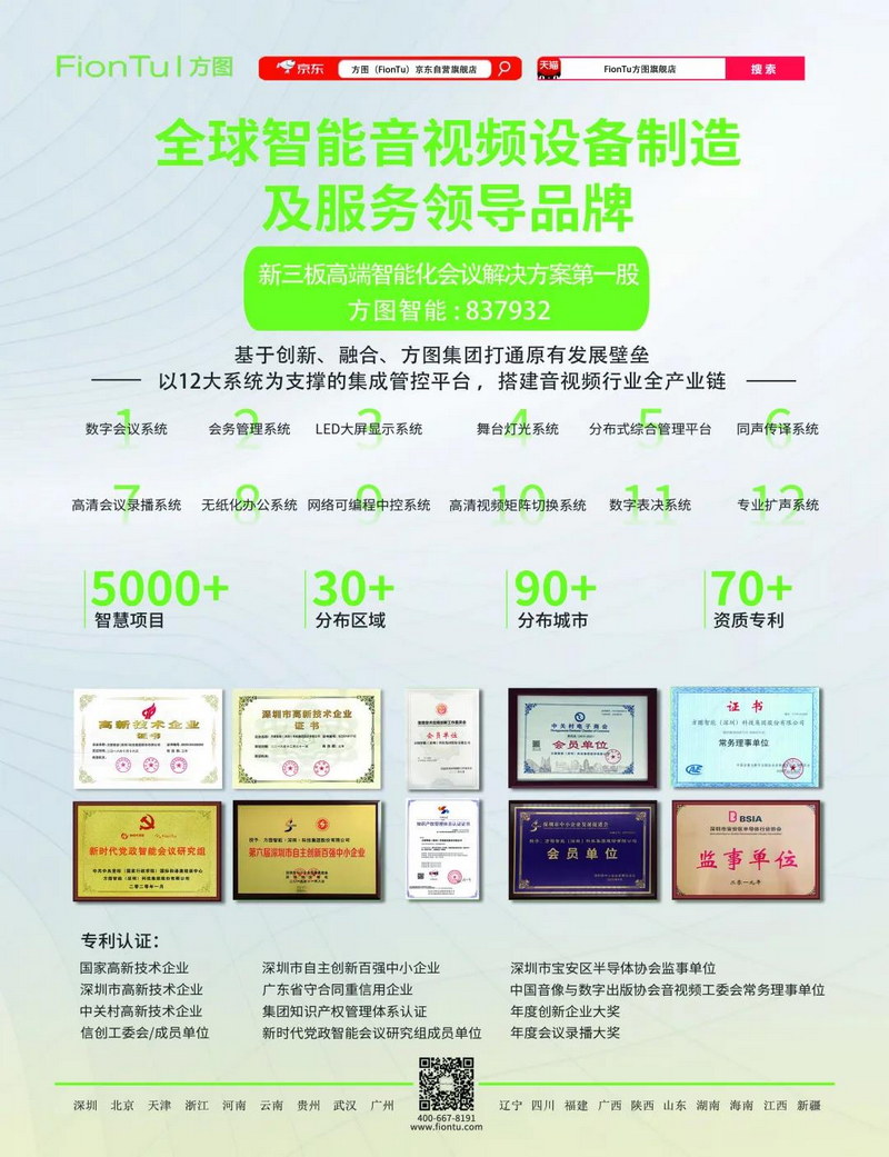 產品覆蓋 LED大屏顯示系統、會務管理系統、舞臺燈光系統、分布式綜合管理平臺、同聲傳譯系統、高清會議錄播系統、無紙化辦公系統、網絡可編程集控系統、高清視頻矩陣切換系統、數字表決系統、專業擴聲系統、數字會議系統,致力于打造本領域優秀的國家高新技術企業!