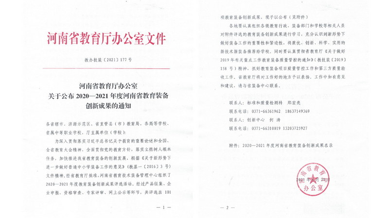 根據河南省教育廳辦公室教辦技裝【2021】177號文件,清大視訊成功入選2020-2021年度河南省教育裝備創新成果名錄并獲頒布公示,其中清大視訊兩項創新成果“清大視訊智慧課堂解決方案”、“清大視訊智慧照明解決方案”涵蓋了我司智能交互平板和教室照明燈具數款明星產品。
