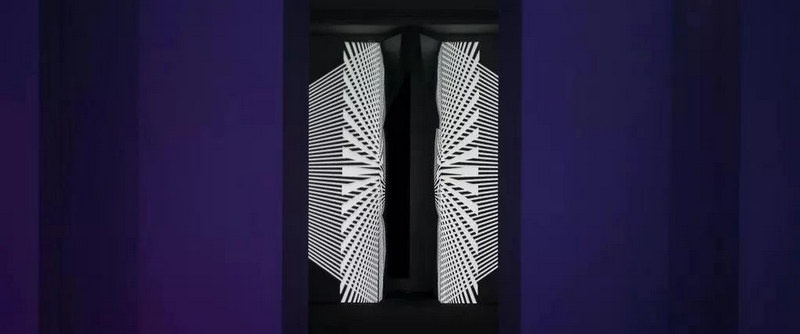 下面這個裝置通過光線的反射營造出夢幻的幾何線條,這一切都源自于兩個90度的鏡面板。