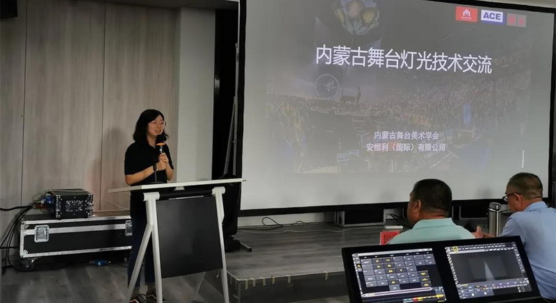 安恒利燈光部內蒙古區域銷售經理蘭詩溢代表安恒利公司表達對內蒙古舞臺美術學會的支持與幫助表示感謝,對遠道而來參加培訓的老師表達感謝。