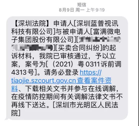 藍普視訊訴富滿電子買賣合同糾紛案已由人民法院受理,藍普視訊2021年8月9日收到正式立案通知,兩案索賠合計5278.26萬元。