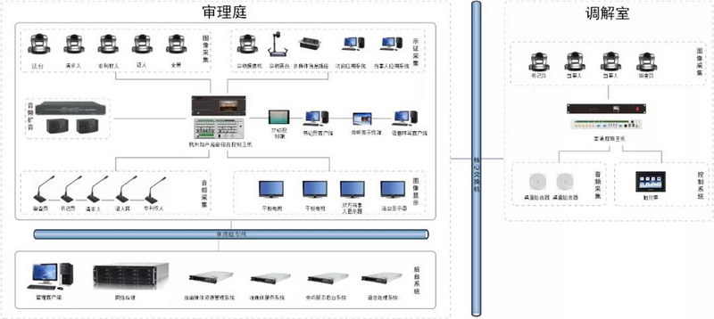 本項目共建設1個審理庭,1個調解室,其中包含庭審資源管理系統,庭審軟件應用系統,庭審實時控制系統,庭審語音實時轉寫系統等,可以實現: