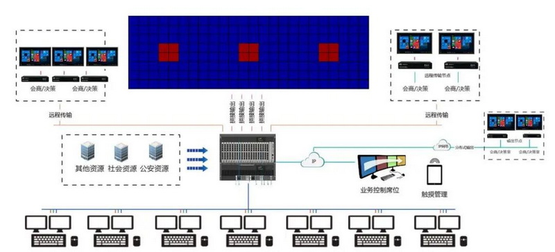 支持瞬間的不同分辨率和幀率的視頻信號源之間的切換。確保各類音視頻信號及時顯示在大屏等顯示系統,進行實時調度、會商、決策及信息反饋等應急管理,形成總攬全局、防控一體的多媒體高清顯示切換系統。