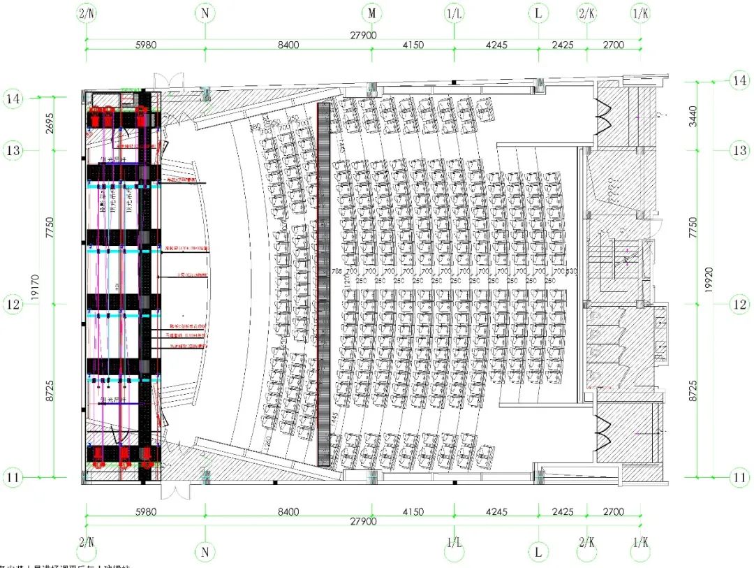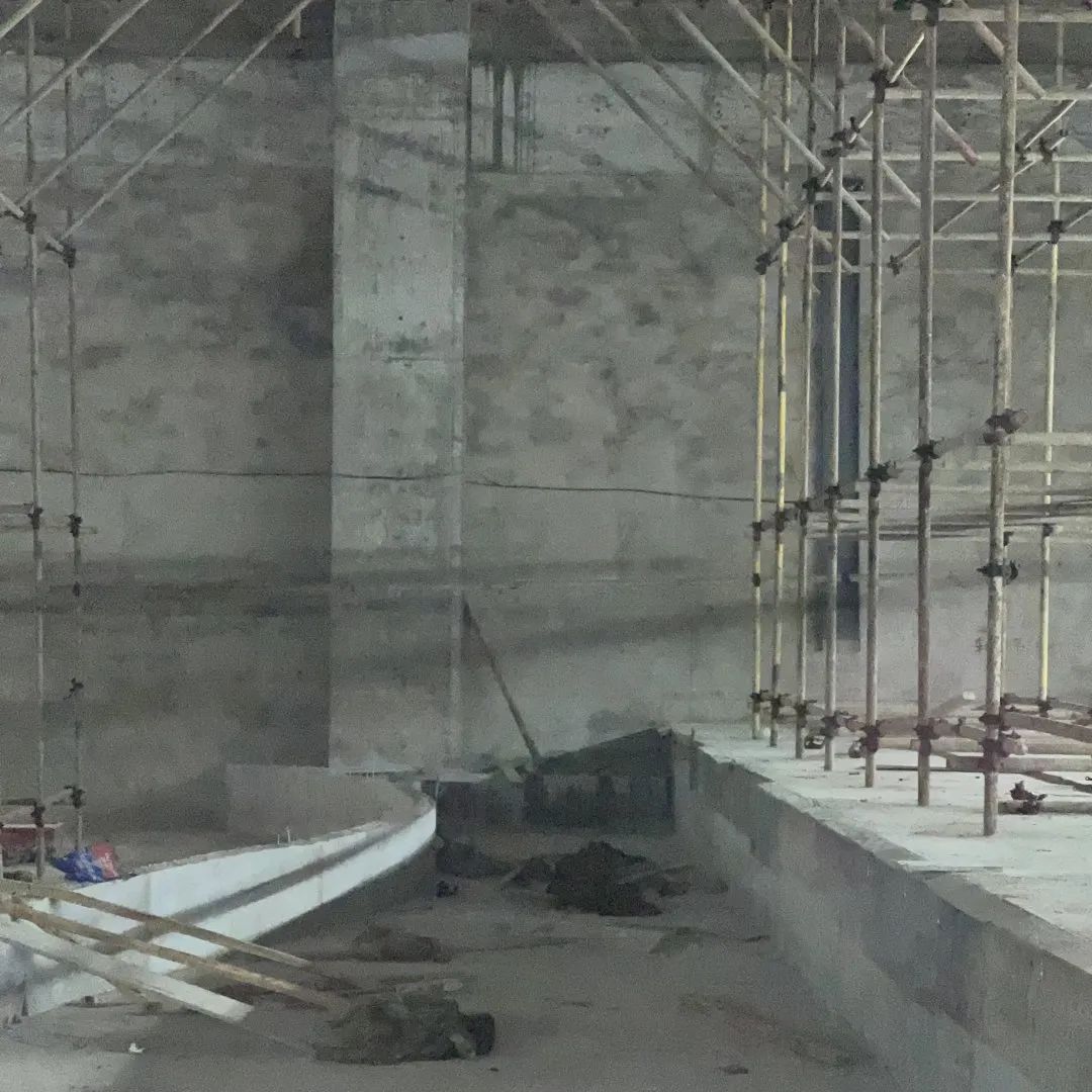 目前現場土建結構已經基本完成,正在進行外幕墻和里面機電安裝的大面積施工。舞臺機械系統工程安排進場,工人進行安全培訓,做好前期準備工作。整理搭建腳手架,建立安全可靠的安裝條件。