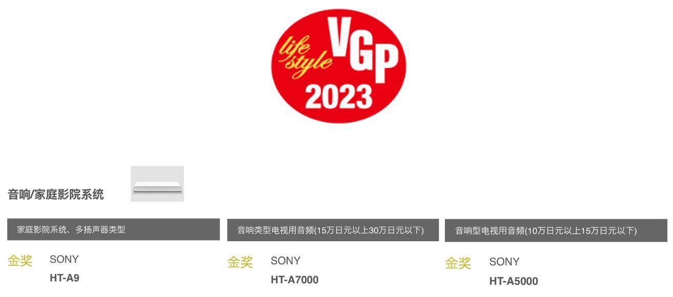 近日,有視聽界“奧斯卡”之稱的日本綜合消費電子大賞VGP 2023公布了最新的獲獎名單,索尼360SSM家庭影音系列產(chǎn)品憑借絕對實力,一舉摘得三項金獎,其中HT-A9獲家庭影院多聲道揚聲器類目金獎,HT-A7000獲回音壁產(chǎn)品15-30萬日元類目金獎,HT-A5000獲回音壁產(chǎn)品10-15萬日元類目金獎。