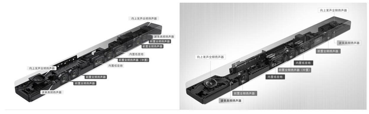 (左)索尼旗艦級回音壁HT-A7000結(jié)構(gòu)圖;(右)索尼高端回音壁HT-A5000結(jié)構(gòu)圖