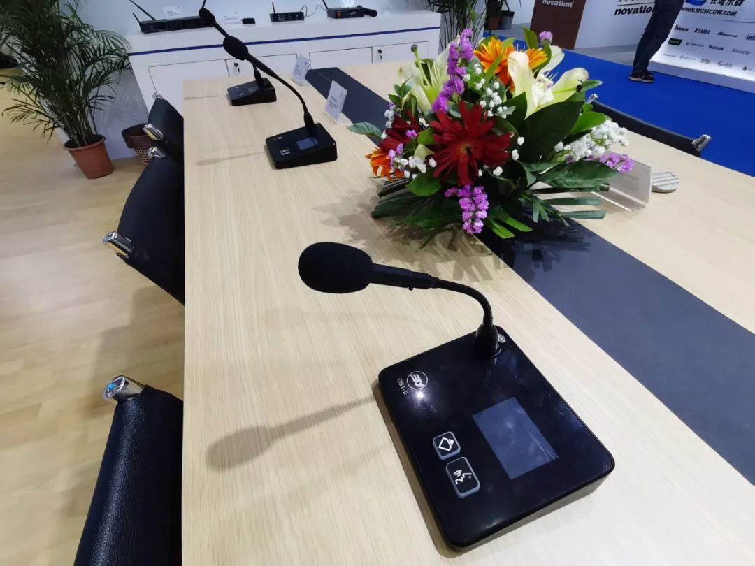 AUDIX會議應用區域展出體積非常小的半心型指向的界面話筒M60及M60N,雖然體積小,但有180度的拾音范圍,長桌會議室時只需使用兩支話筒就可以覆蓋全場,AUDIX鵝頸話筒MicroPod系列短桿話筒結合易創研發的無線底座,即可以做視頻會議,也可以本地擴聲使用。