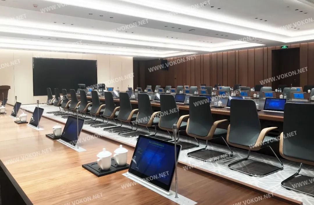 現VOKON為榆林能源集團設計了一套集無紙化會議系統、專業討論系統、自動攝像跟蹤系統 的音視頻整體解決方案,該系統為整個會議室提供了一個極為實用的無紙化會議平臺。