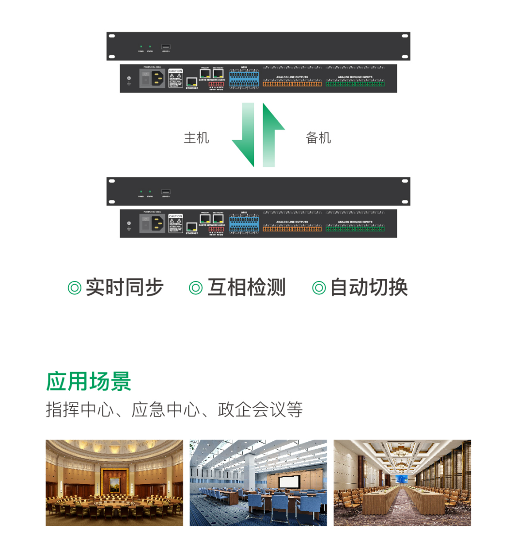 數字音頻處理器作為整個音頻系統(tǒng)最核心的處理設備,具備雙機熱備功能,由智能算法設定備份機制,實現自動化備份,主從設備秩序保證完全相同的配置,通過系統(tǒng)內機制就可實現鏡像備份,以“心跳”信號為基礎,實現節(jié)點無漏洞、系統(tǒng)運行不間斷,為系統(tǒng)穩(wěn)定運行保駕護航。