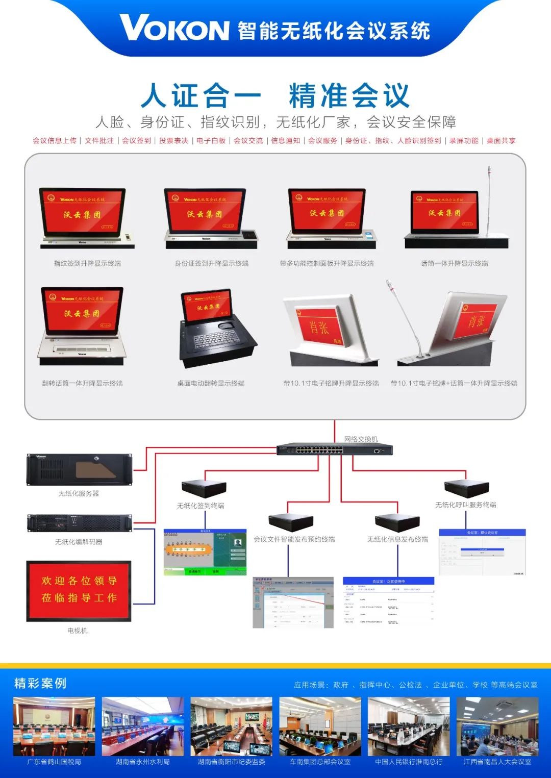 選用VOKON全數字會議系統等產品,配合音頻設備,使得拾音距離更遠,發言更清晰。