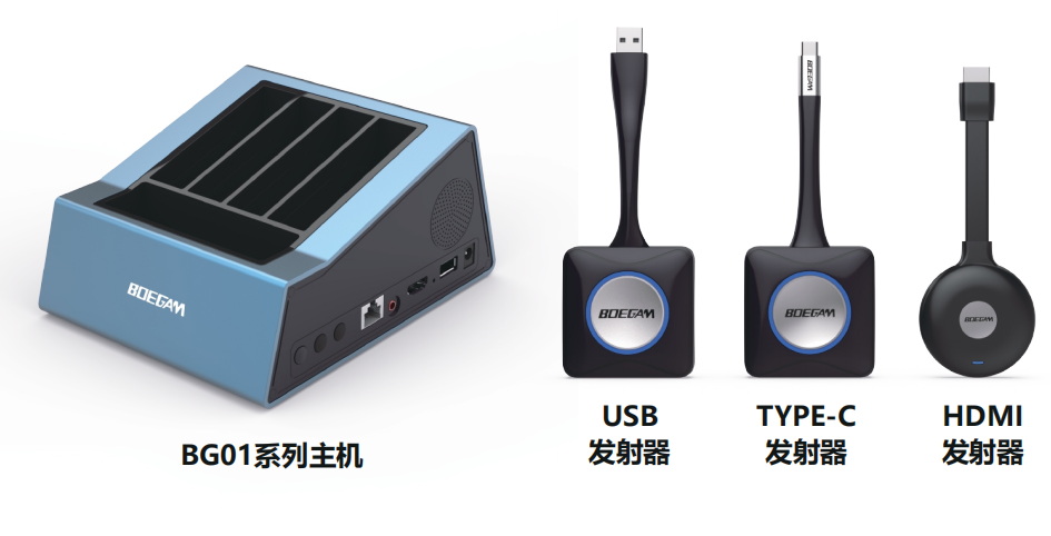 BG01桌面式無線投屏一體機可同時配置USB/HDMI/TYPE-C發(fā)射器,避免會議尷尬,有效提升會議效率,更顯干練。