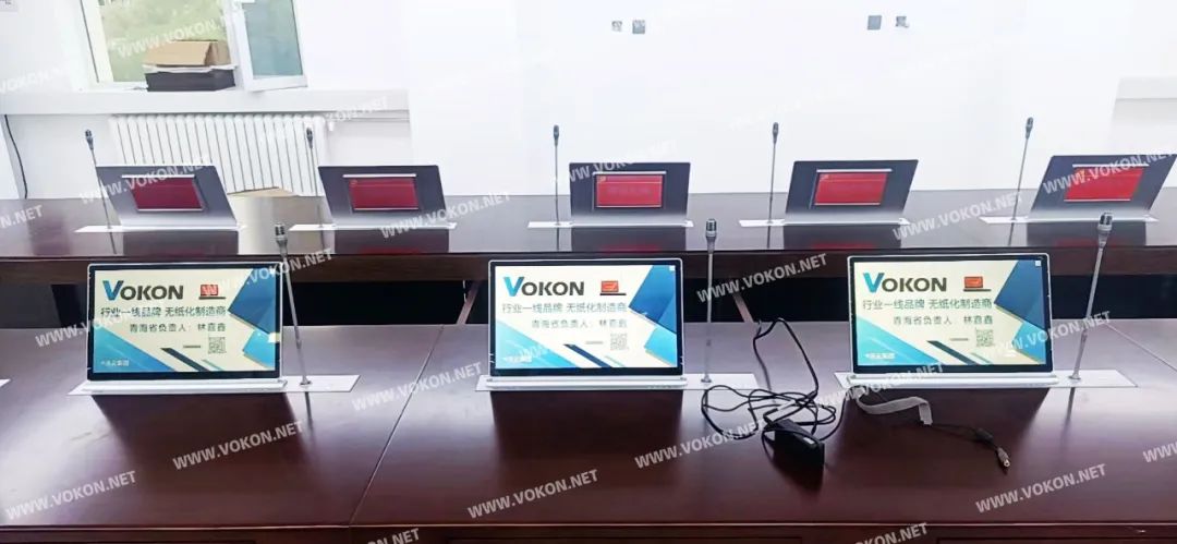 VOKON智慧無紙化會議系統及產品應用在會議室中,方便了會前、會中、會后管理,既提高了會議資料分發、收集、整理的效率,又做到節能環保!