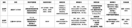 三星Q950A與索尼HT-A7000揚聲器的對比圖(來源網絡)