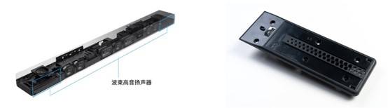 再來看看HT-A7000內置的組件“側置波束高頻揚聲器”。索尼特別留意了聲學管道的材料以及出音小孔的配置。為了減少直達聲、進一步營造環繞音,索尼根據想要的聲音共鳴效果選擇聲學管道的材料,并盡量在1毫米的厚度內包含盡可能多的設計理念和小孔配置,增強聲音反射效果,從而精確定位和反射,使聲波集中在約75°~90°之間,減少耳朵能聽到的直達聲,使聲場寬廣,適合聆聽的位置廣闊。