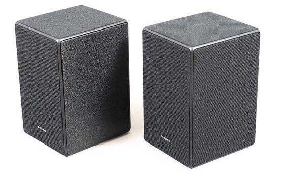 Q950A的環繞音箱每只有3個方向的揚聲器,織物材料覆蓋揚聲器透聲,另一面為塑料材質,略顯廉價。