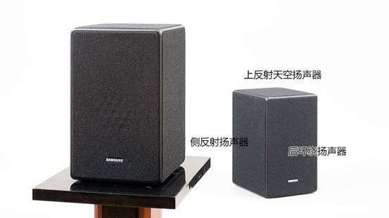 三星Q950A自帶的環繞音箱,每只都具備三個方向的揚聲器,在實際測試,空間感表現非常突出,后天空聲道的存在,對于天空音效的運行軌跡呈現有很大的幫助。