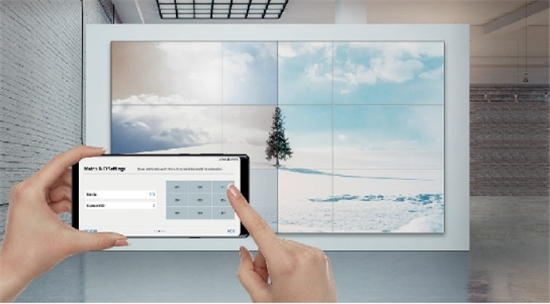 針對個性化的校準需求,三星提供功能強大的免費軟件三星Color Expert Pro幫助用戶管理亮度和色彩均勻性,可根據產品型號選擇不同的校準項目。而對于需要更簡單操作方案的使用者,三星Color Expert Pro Mobile移動解決方案支持手機攝像頭,使用戶憑借自己的手機便能實現直觀、簡便且快捷的視頻墻校準,手機中的用戶界面直觀簡明,即使是非專業用戶也可以輕松掌握,調整高達5x5的視頻墻白平衡。此外,為三星視頻墻顯示屏連接數字標牌播放盒,通過DisplayPort 1.2或HDMI端口,便能在超大視頻墻顯示屏上播放超高清內容。利用數字標牌播放盒自帶的菊花鏈功能,更可輕松對視頻墻顯示屏矩陣的不同顯示面板進行控制和內容管理。