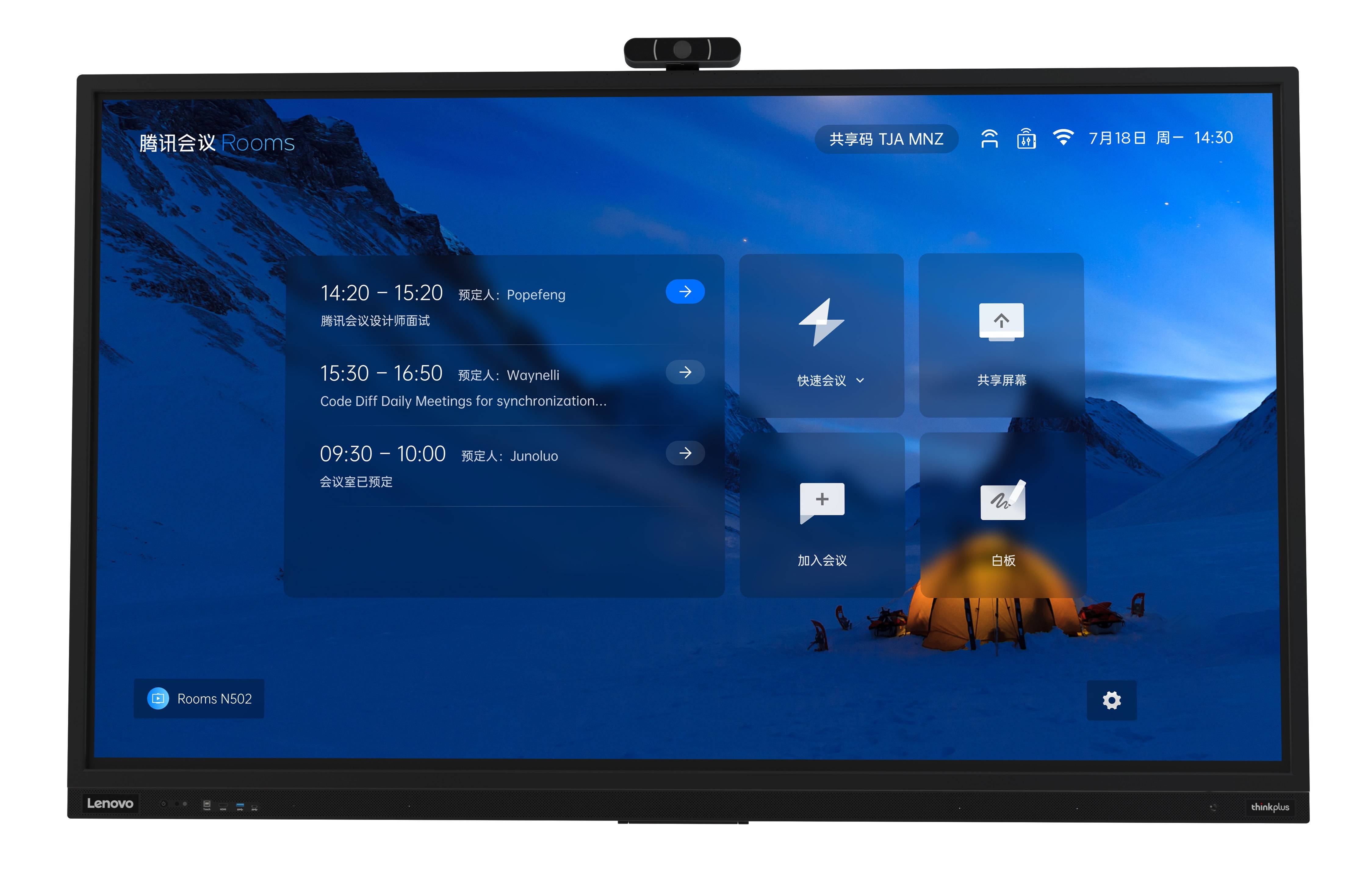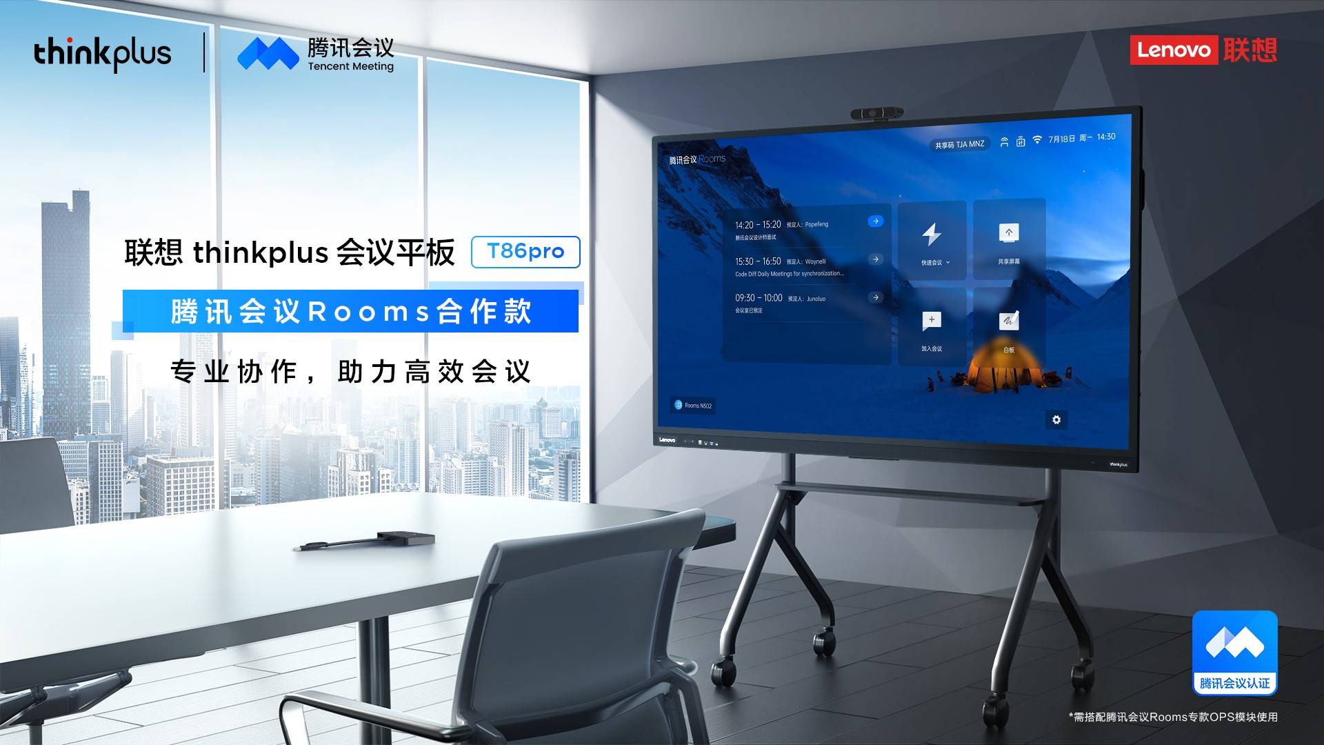 聯(lián)想thinkplus會議平板T86pro騰訊會議Rooms合作款,不止是將軟硬件產(chǎn)品功能的相互疊加,更是將軟件與會議平板進行深度融合,以實現(xiàn)更穩(wěn)定、更流暢的使用體驗。
