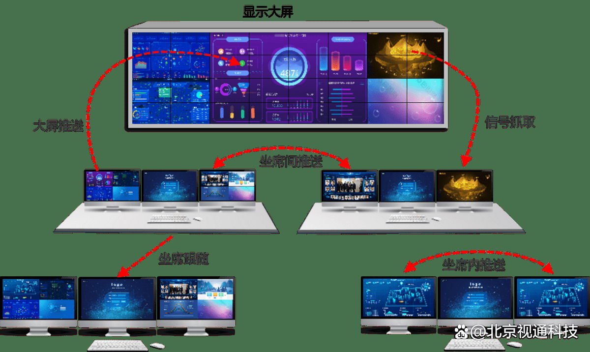 視通科技分布式KVM坐席拼控系統,打破信息壁壘,在整個系統內形成高效流通的信息傳輸紐帶,提升各業務部門信息感知力,實現跨部門、跨區域的信息交互、流程協作。