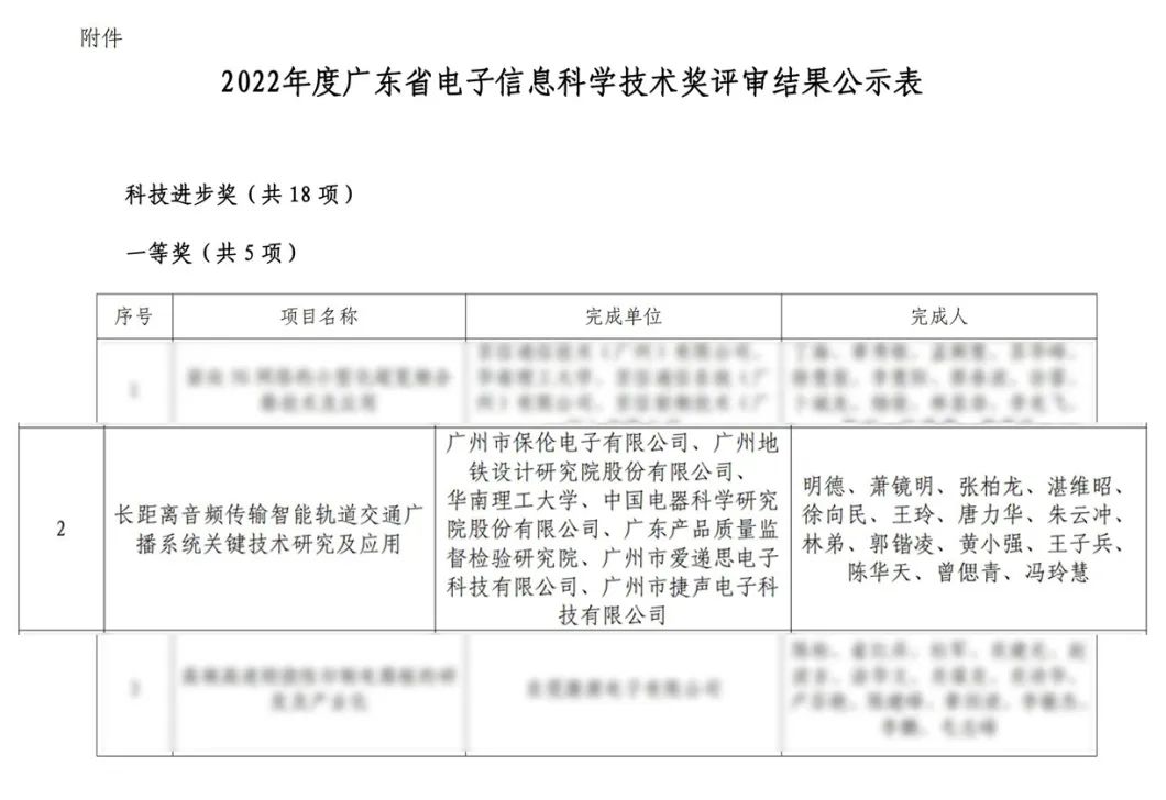 為推動廣東省科學(xué)技術(shù)進(jìn)步,激勵(lì)自主創(chuàng)新、鼓勵(lì)開放合作、突出價(jià)值導(dǎo)向,注重成果質(zhì)量和貢獻(xiàn),充分調(diào)動廣大科技工作者科技創(chuàng)新的積極性和創(chuàng)造性。廣州市保倫電子有限公司主動作為、勇于創(chuàng)新,牽頭參與制定了“長距離音頻傳輸智能軌道交通廣播系統(tǒng)關(guān)鍵技術(shù)研究及應(yīng)用”。