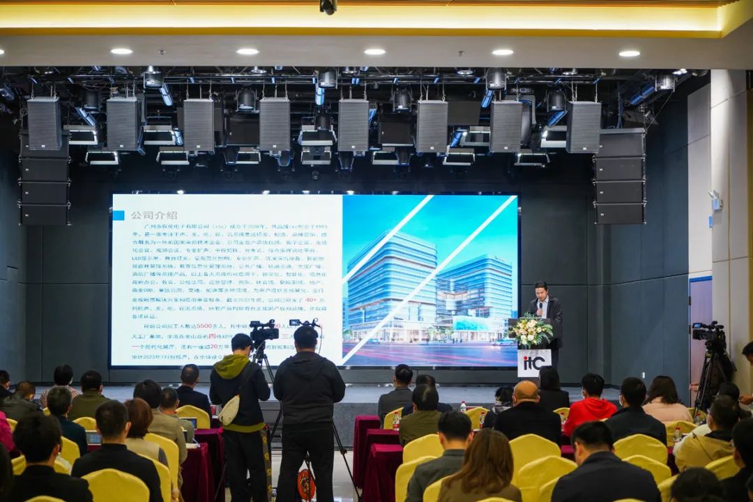 廣州市保倫電子有限公司作為土生土長的番禺企業,成立于2008年,品牌itc創立于1993年,是專注于電、聲、光、視訊系統集成設備研發和生產的國家高新技術企業。目前公司員工5500多人,擁有五座工廠基地、四棟辦公大樓、三大研發中心和一個現代化智慧展廳體驗館。截止2022年底,公司已研發了40多種電、聲、光、視訊系統。其中包括數字會議、無紙化會議、視頻會議、專業擴聲、中控矩陣、分布式綜合管理信息平臺、無感調度平臺、LED顯示屏、舞臺燈光、景觀照明、沉浸式演出設備、樓宇能耗管理、教育信息化、公共廣播、軌道廣播、文旅廣播、消防廣播等。