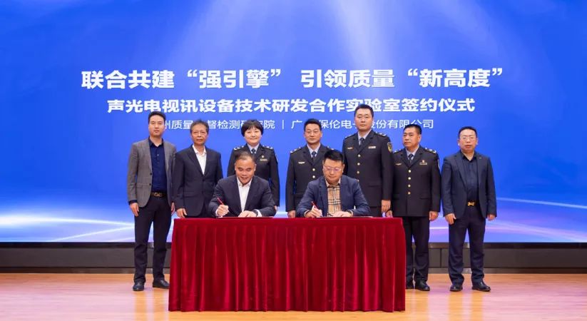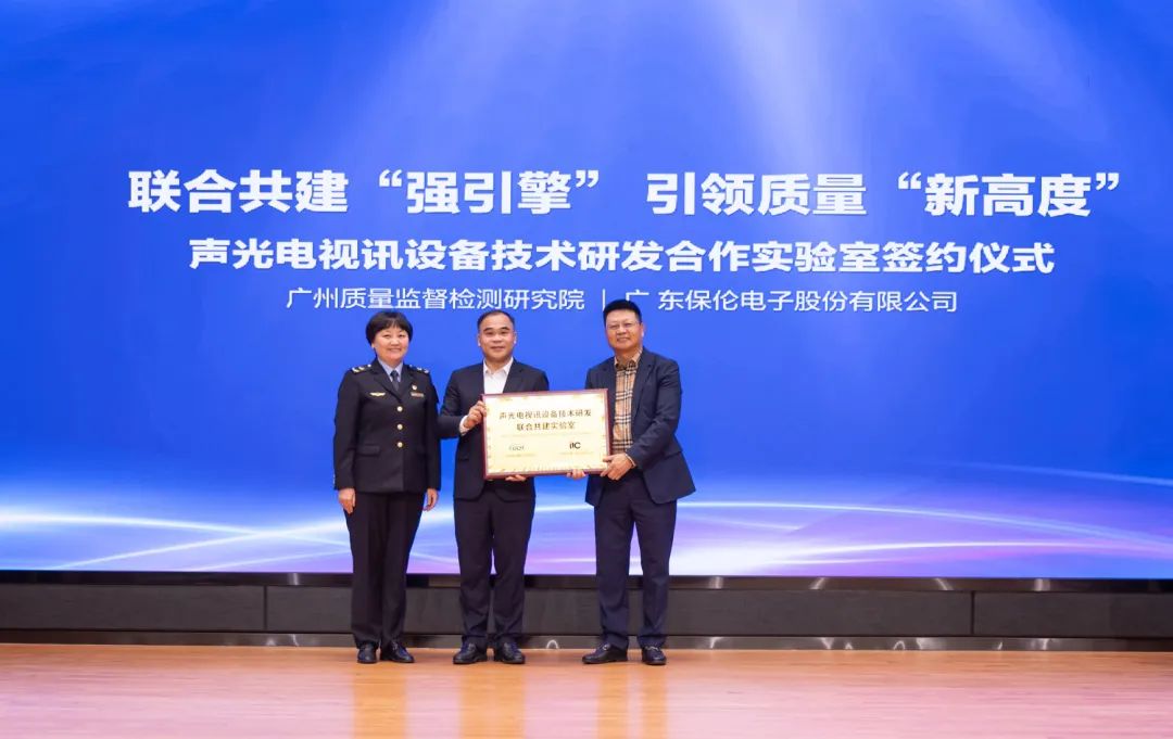 2023年3月1日上午,聯合共建“強引擎” 引領質量“新高度”——廣東保倫電子股份有限公司與廣州質量監督檢測研究院“聲光電視訊設備技術研發合作實驗室”簽約儀式在itc舉行。聲光電視訊設備技術研發合作實驗室的成功簽約,將充分發揮各自資源優勢,深度開展交流合作,打通從實驗室到產業化的“最后一公里”,引領行業高質量發展。