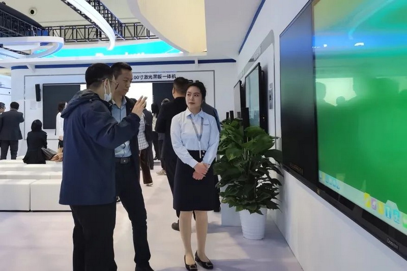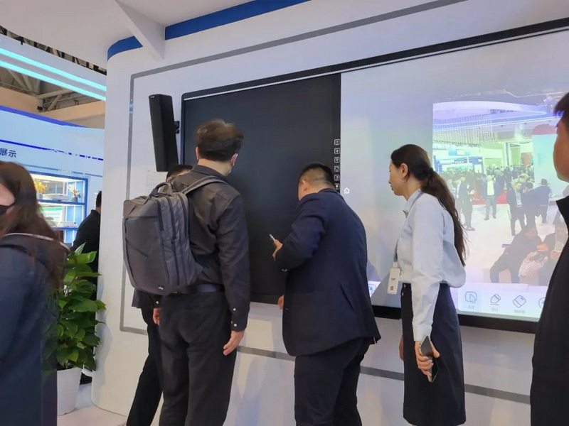 由東方中原創造性研發的激光黑板一體機吸引了眾多參觀者駐足,他們仔細觀摩,親自上手體驗,感受新品激光黑板一體機帶來的真實體驗。