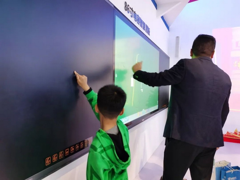 此次展會上,東方中原還帶來了電容智慧黑板、電容觸控一體機、紅外觸控一體機、畫屏等全系列產品,并搭建了可供沉浸式體驗的智慧教室和黨史館,還原真實課堂體驗。