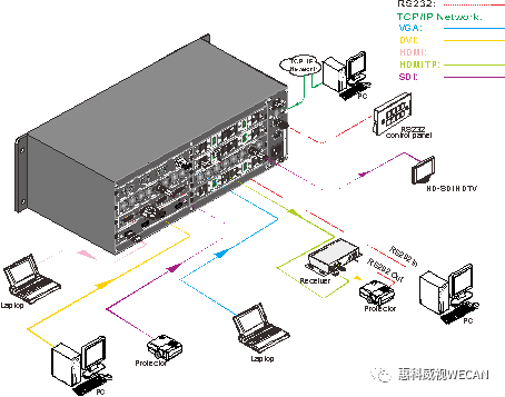 控制方式靈活,具有按鍵操作,RS232控制功能和紅外控制功能,還可根據(jù)用戶需求,在混合插卡矩陣系列后面板定制網(wǎng)絡(luò)控制端口,方便客戶與各種控制設(shè)備配合使用。