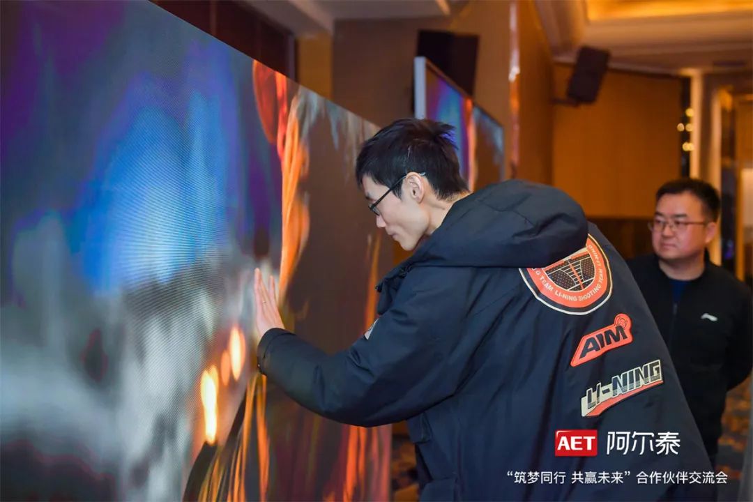 本次交流會現場,AET阿爾泰為到場的伙伴們展示了好萊塢DCI-P3電影級絕美大屏、43/46/55/60吋AT系列HDMI版標準顯示單元、追光系列戶外裸眼3D大屏、NX系列P0.9通用產品、120吋一體機等標桿產品,除戶外大屏外,所有展品均加載QCOB工藝。