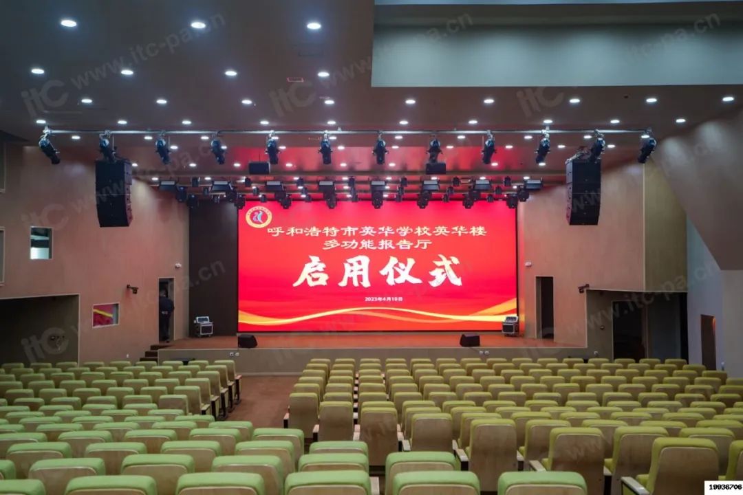 itc為學校報告廳配備不同功能的舞臺燈具,在舞臺上方全方位立體分布,根據不同的表演氛圍,輔以不同的燈光效果,通過燈光變幻營造更好的舞臺藝術氛圍,使整個舞臺動靜結合,冷暖結合,帶動觀眾情緒,提高舞臺表演效果。