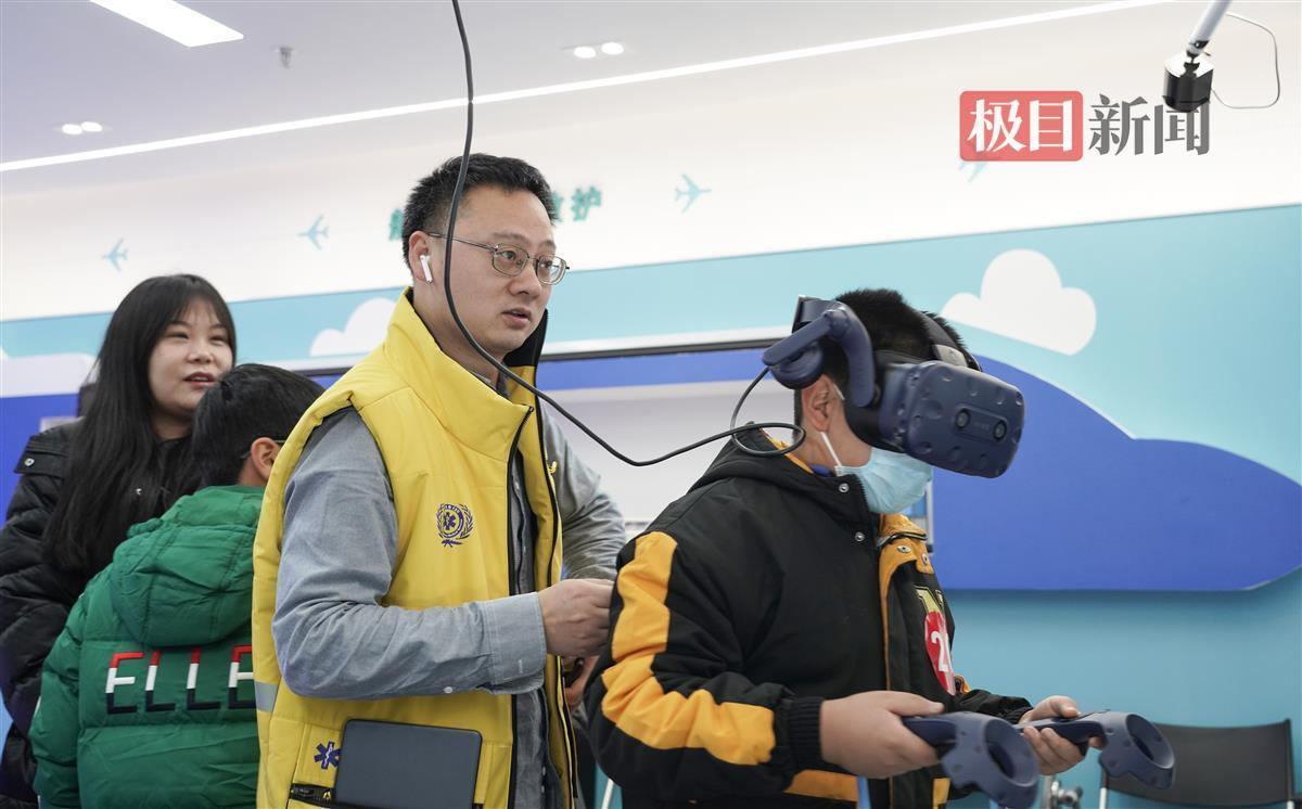 現場,急救VR、空中救援體驗艙也都是爆款體驗項目。孩子們戴上VR眼鏡、手握控制器,瞬間“穿越”到電梯事故、煤氣中毒、溺水救援等虛擬現場,一步步完成自救、互救,通過邊玩邊學,掌握各種急救知識、急救技能。