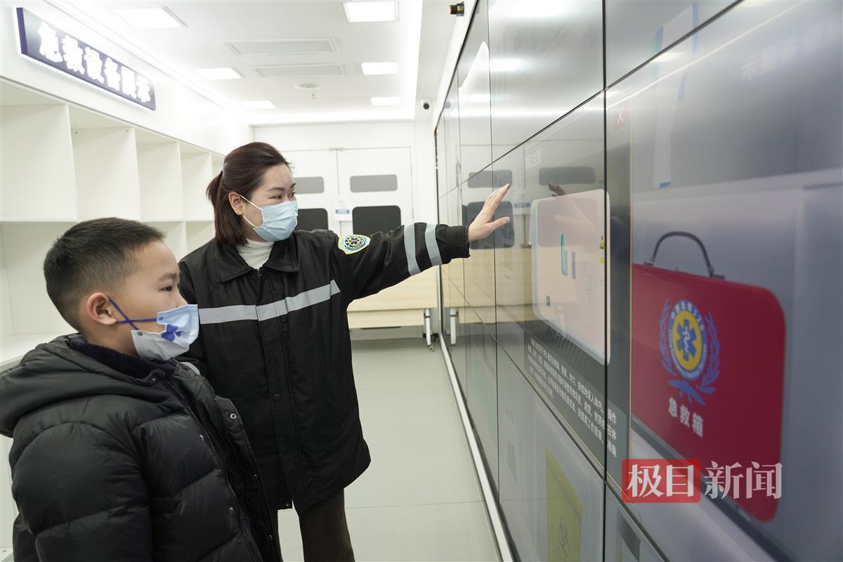 當天,武漢市急救中心還開放了負壓救護車、通信指揮車、新生兒救護車,孩子們分組登上救護車,近距離認識車內的各種急救設備,了解不同救護車的功能。