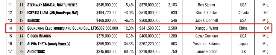 2024年10月,國際權(quán)威雜志《Music Trades》,再度揭曉了全球專業(yè)音響與樂器行業(yè)225強(qiáng)榜單。在這份榜單中,音王集團(tuán)以不可阻擋之勢(shì)交出一份傲人的成績(jī),在2021-2023短短兩年的時(shí)間里從第16名華麗蛻變?yōu)榈?4名,書寫了屬于音王的全新篇章。