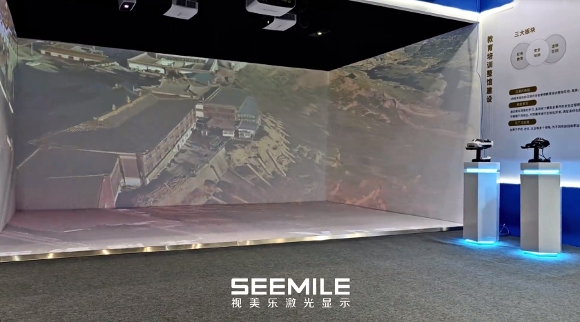視美樂此次打造的CAVE空間采用若干臺主流P系列投影機,通過四面環繞的3D立體城市影像,讓觀眾自由穿梭其中,俯瞰城市建筑,飛躍名山大川,享受栩栩如生、身臨其境的視覺盛宴。