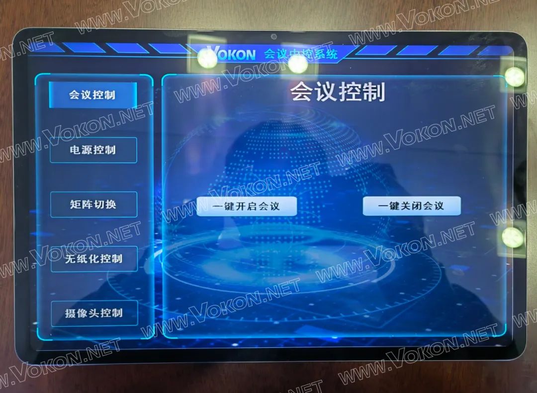 報告廳內多款系統設備繁多,應用VOKON中控系統對報告廳內的設備環境進行集中管理控制。通過中控控制主機、無線觸摸屏、電源管理器、音量調節器、燈光調節器等設備作為系統核心控制設備。實現報告廳聲光電的智能聯動控制,讓會議管理變得輕松、高效、智能。