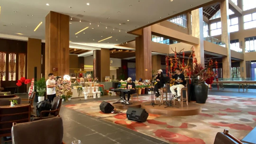 紅樹林度假酒店中庭休息吧,面積有600多平方米,舞臺擴聲系統覆蓋面積有400平方米。