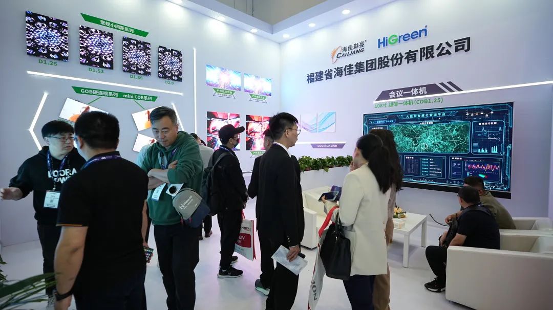 海佳彩亮以Mini COB大屏、MIP封裝系列(0.93)、GOB硬連接系列、室內小間距系列、戶外共陰系列(1.95小間距/自散熱/萬級亮度)及108寸超薄一體機等打造了產品明星陣容,豐富的產品類目和超高品質的性能表現為各領域顯示需求客戶精準提供零距離產品體驗。