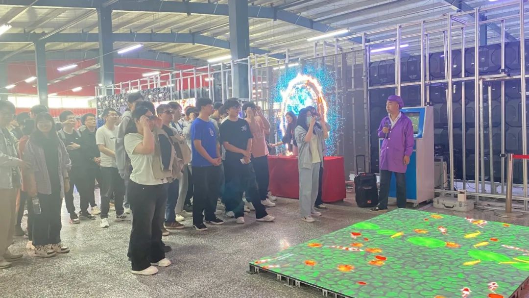 中北大學師生先后參觀了LED封裝、LED顯示屏生產車間。在參觀過程中,他們認真聆聽了企業在產業規模、科技創新、市場開拓等方面的介紹,并詳細了解了LED燈珠、LED顯示屏產品的生產工藝。師生們對高科華燁集團的LED產品展示區表現出了極大的興趣,尤其是裸眼3D、柔性屏、COB小間距系列和沉浸式體驗區,引發師生們駐足觀看。