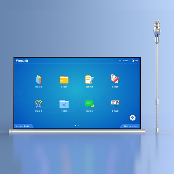 威數智能的STIM超薄鋒刃集成發言一體升降觸控屏顯示終端設有4K超清屏幕,采用CNC工藝,集成了高清攝像頭和激光紅外鍵盤,適配Zoom平臺完成獨立的視頻會議。
